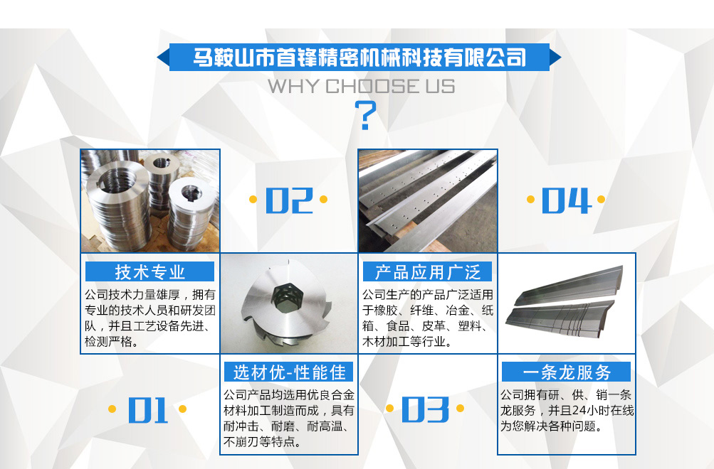 - 主打產(chǎn)品 : 剪板機(jī)刀片 圓刀片 折彎機(jī)模具 硬質(zhì)合金(鎢鋼)刀片 分條機(jī)刀片 撕碎機(jī)刀片